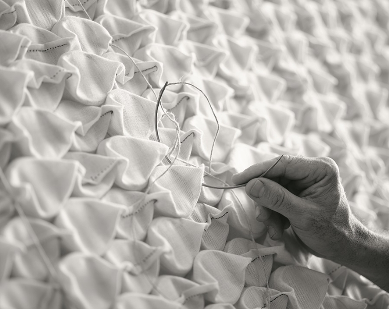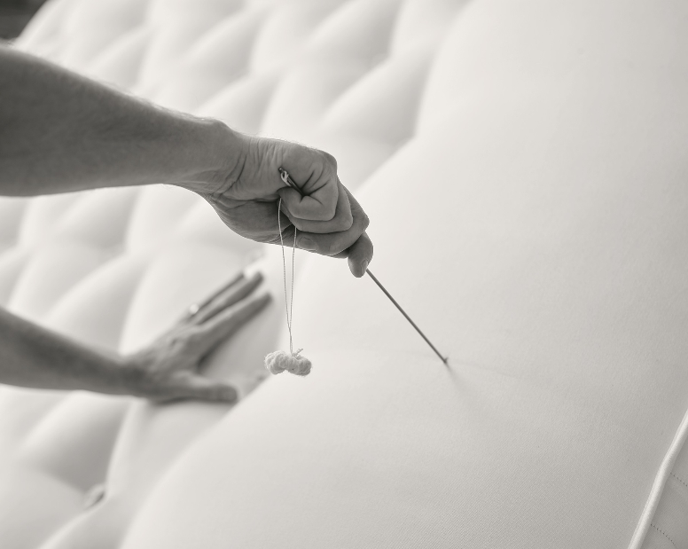 True luxury requires patience. By replacing chemical glue with traditional hand-tufting, we ensure that the natural fillings inside remain fluffy and evenly distributed. This "buttonless" technique preserves the integrity of the materials, creating a sleep surface that adapts to your body while staying fresh and airy.